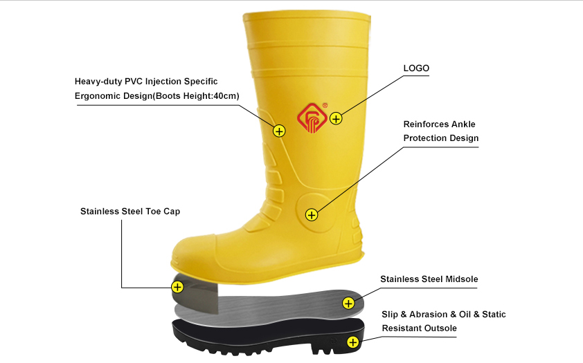 | Outsole | Slip & abrasion & chemical resistant outsole. |