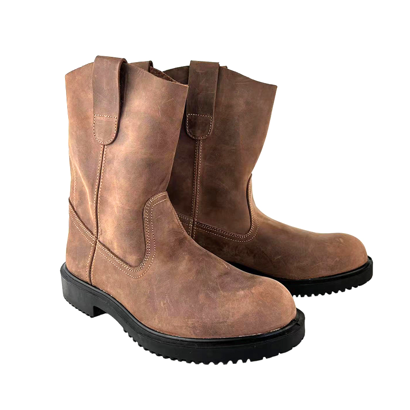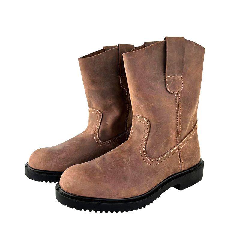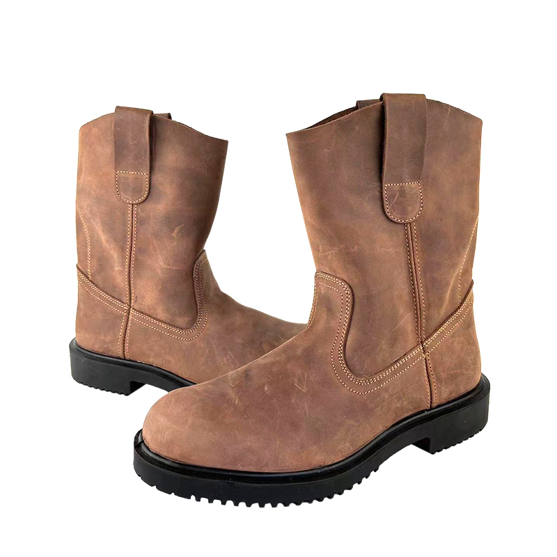 | Advantages | .Crazy-horse cow leather: Unique appearance which has a unique color and texture, show a unique luster and texture after time of wear, making the shoes look more personalized .Durability: Crazy-horse cow leather is known for its strength and durability, suitable for making wear-resistant shoes that can withstand the test of daily wear and use .Easy to maintain: It is relatively easy to clean and maintain Crazy Horse leather, and special leather care products can be used to maintain the appearance and texture of the shoes. .Outsole injection Technology: High-temperature injection molding, lightweight, flexibility, good cushioning properties .High-top design: Cover the part above the ankle, providing more protection and support and it can provide better protection against sprains or injuries due to their larger coverage .Energy-absorbing design: Reduce impact and pressure on the feet and joints, providing additional comfort and protection |