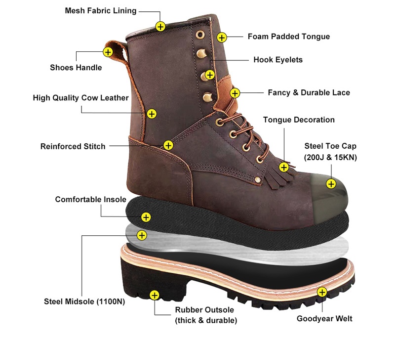 | Impact and Puncture Resistance | Goodyear Welt Logger Boots featuring a steel toe and steel midsole are engineered to meet the exacting ASTM and CE standards. The 200J impact - resistant rating safeguards against hefty impacts, like falling tools. The 1100N puncture - resistant quality thwarts sharp objects, and 15KN anti - compression ensures they maintain integrity under heavy loads. |