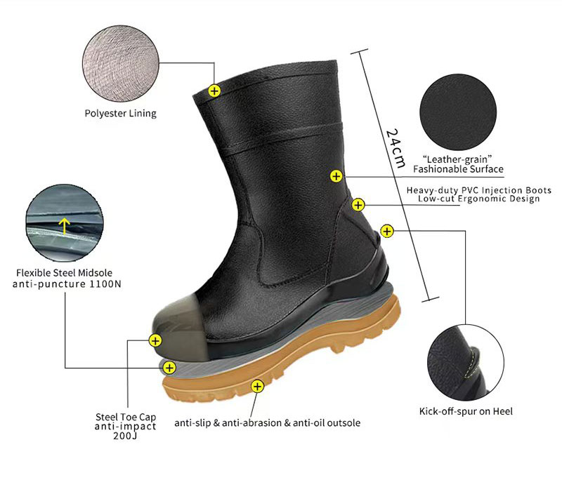 | Steel Midsole | Stainless steel mid-sole for penetration resistance 1100N and reflexing resistance 1000K times. |